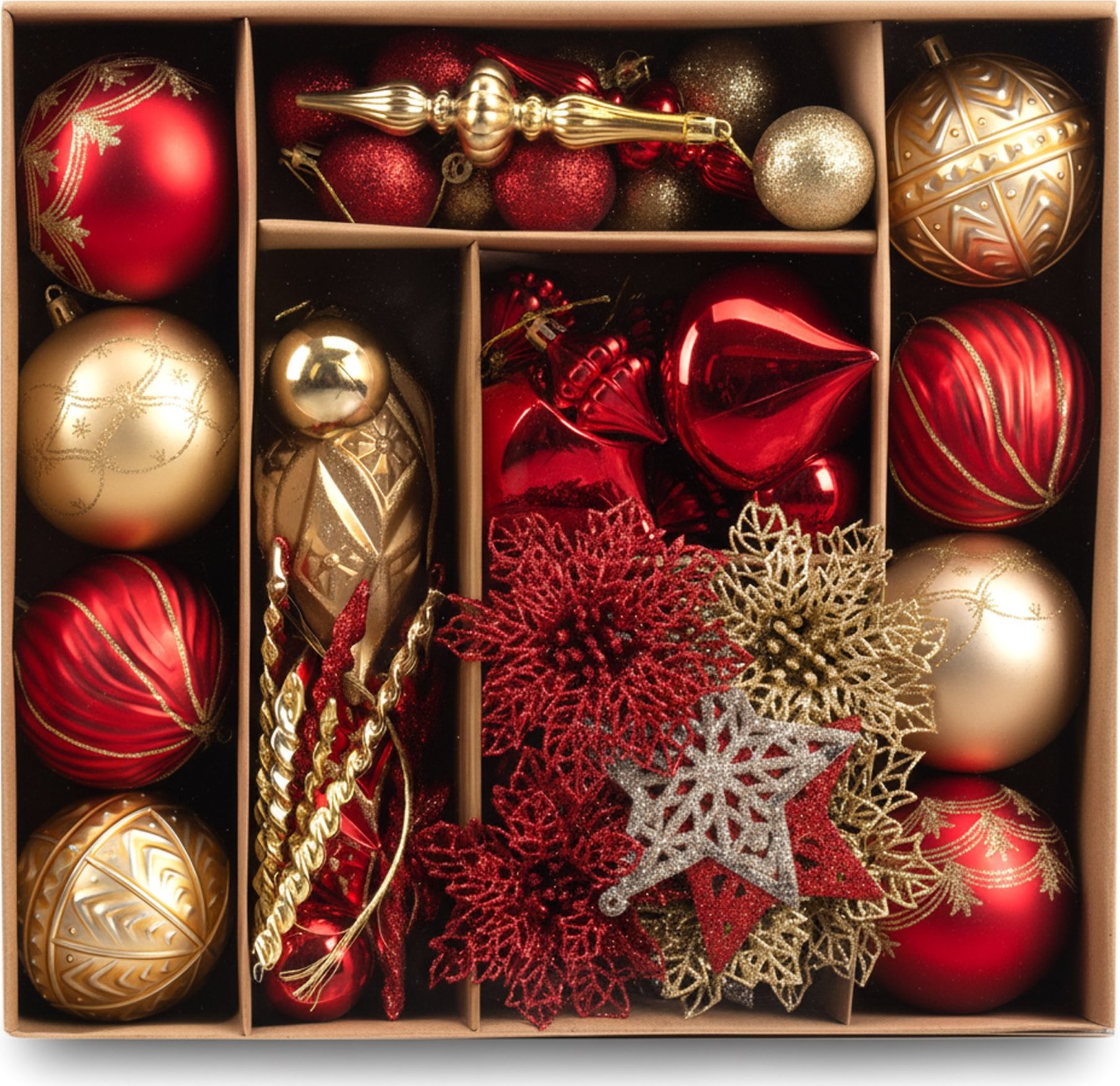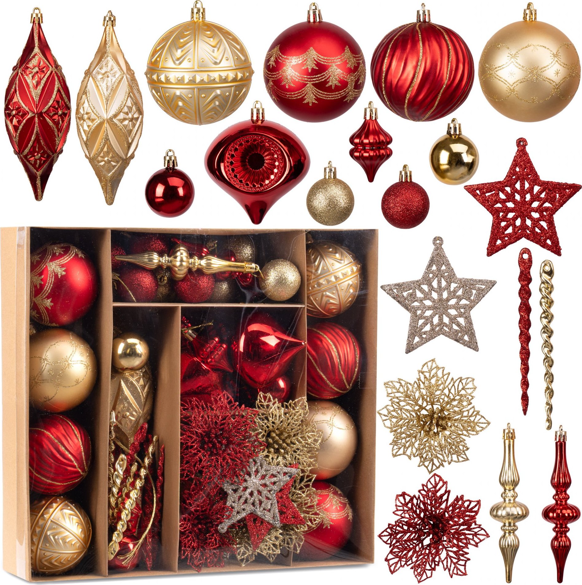 Sada vánočních ozdob na stromeček MARIEN - 70 kusů - červené/zlaté