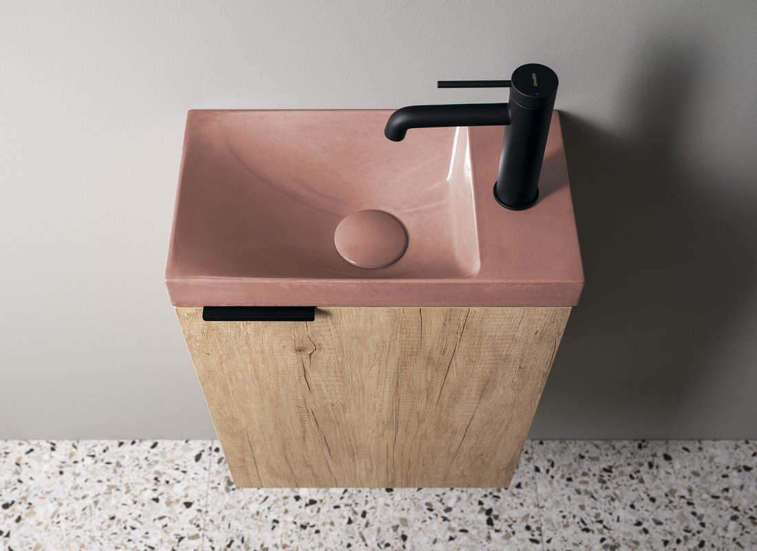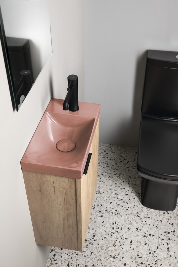Sapho AGOS betonové umývátko 40x22cm, levé/pravé, růžová pololesk AS40021