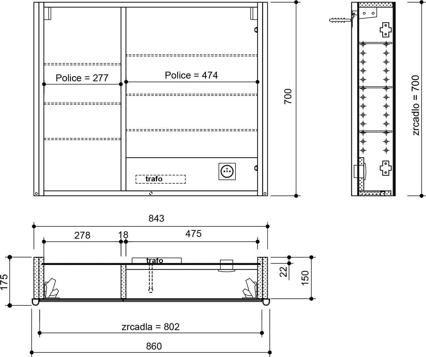 - Výbava: Osvětlení, Elektrická zásuvka, Oboustranná zrcadlová dvířka, Zpomalovací panty