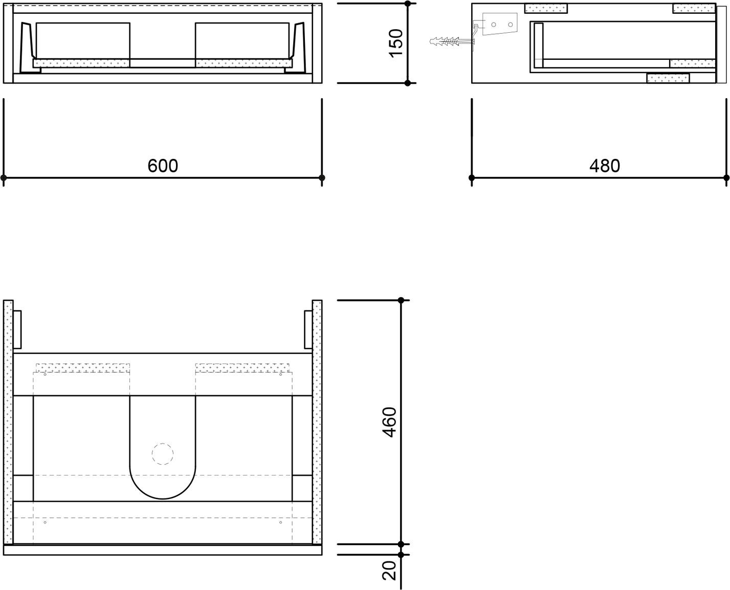 Závěsná umyvadlová zásuvka pod desku