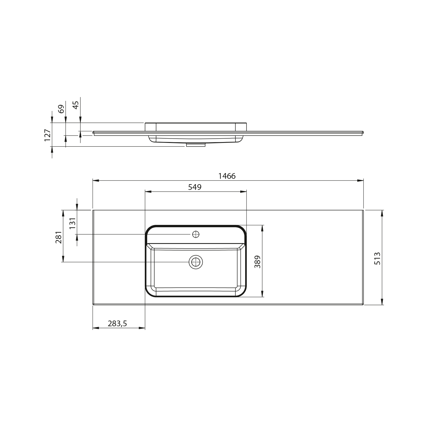Sapho BRAHEA umyvadlo 146, 6x51, 5cm, rockstone, levé, bílá mat BT147L