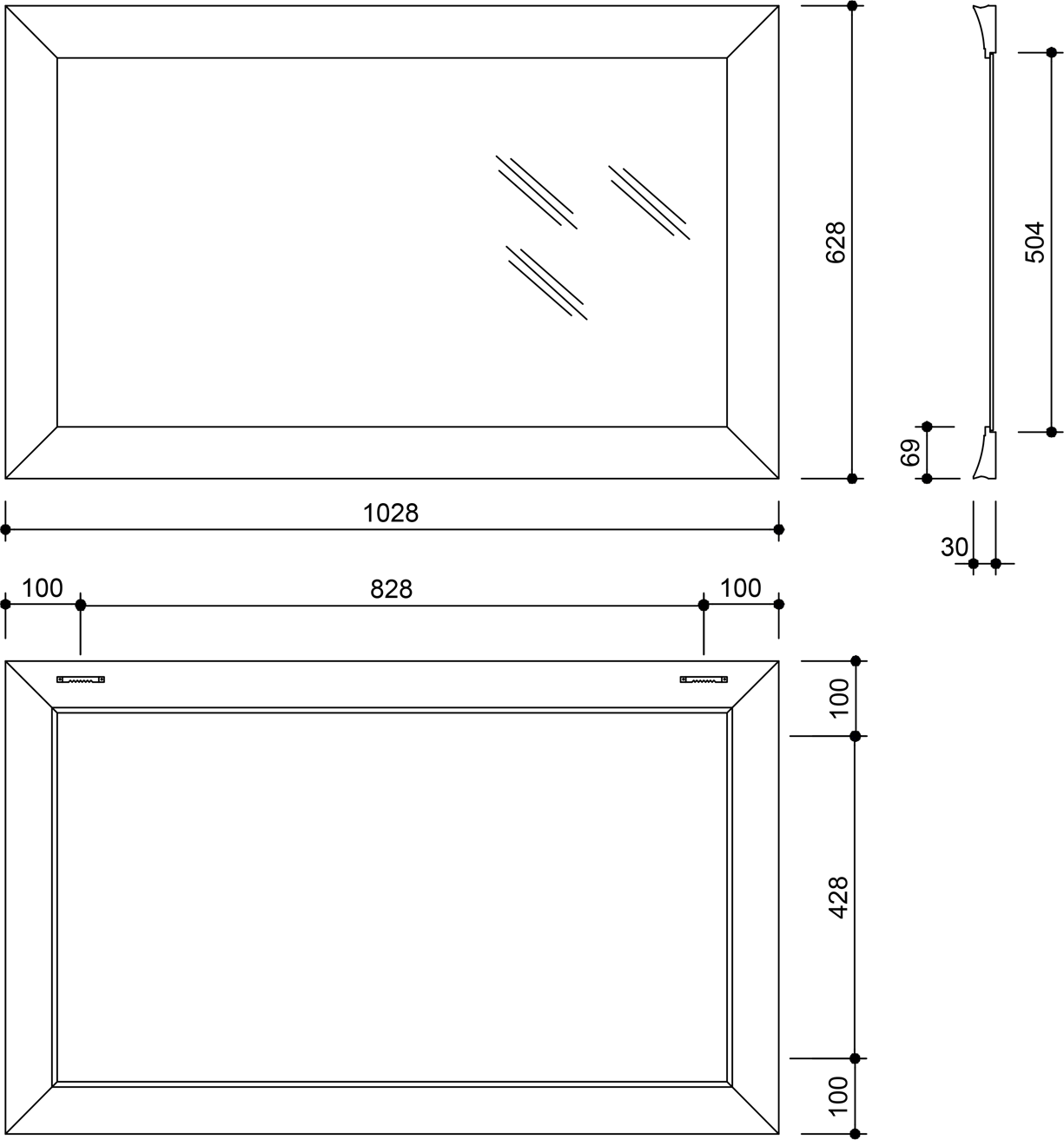 Možné vyrobit v atypickém rozměru: max. rozměr rámu 828x1228 mm (zrcadlo 700x1100 mm, doba dodání do 30 dnů, cena na dotaz)
