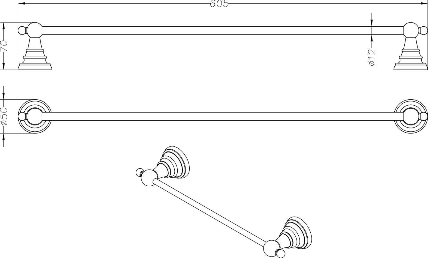 Sapho DIAMOND držák ručníků 600x70mm, chrom 1317-09