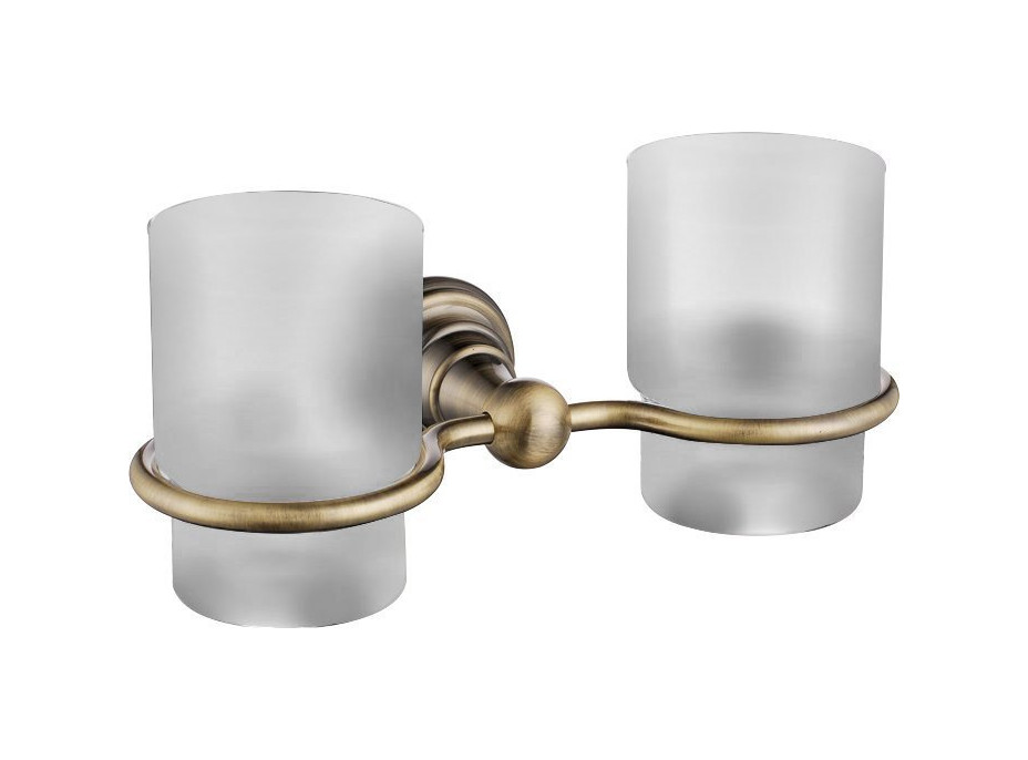 Sapho DIAMOND dvojitý držák skleniček, mléčné sklo, bronz 1318-05