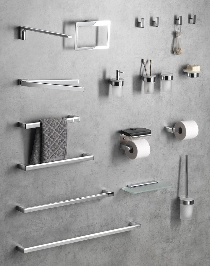 Snad inspirován pohledem na krásu Pyrenejí navrhl designér sérii doplňků PIRENEI. Masivní základna, kombinace přímých linií a zaoblených hran je spojením elegance a majestátnosti. Na výběr jsou doplňky v provedení v chromové, matné černé, matné bílé, gun metal, zlaté a matné zlaté variantě.