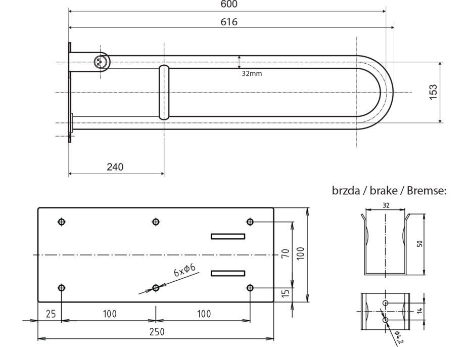 Sapho HANDICAP madlo sklopné 600mm, černá mat XH516B