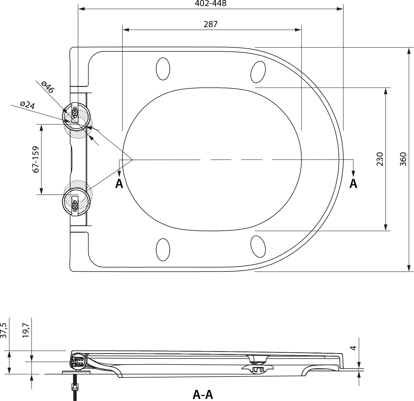 - Výbava: Soft Close (pomalé sklápění), Easy Take (odnímatelné sedátko)