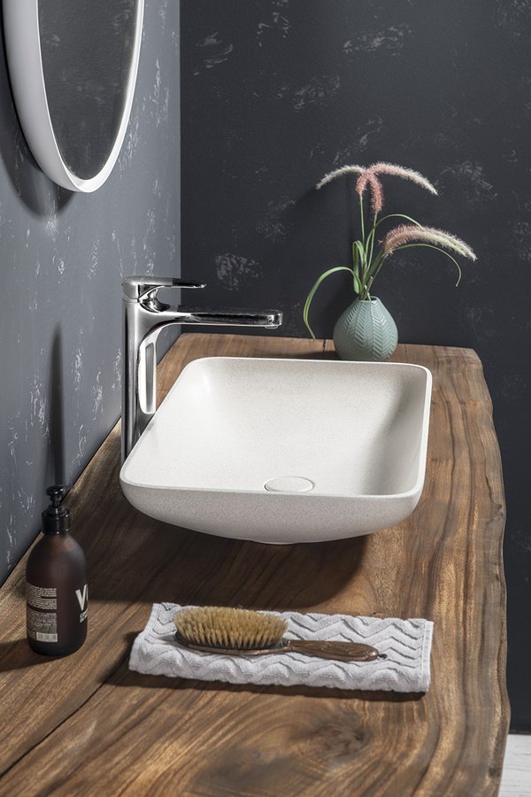 Sapho INFRANE betonové umyvadlo na desku, včetně výpusti, 57x37cm, bílý pískovec AR460