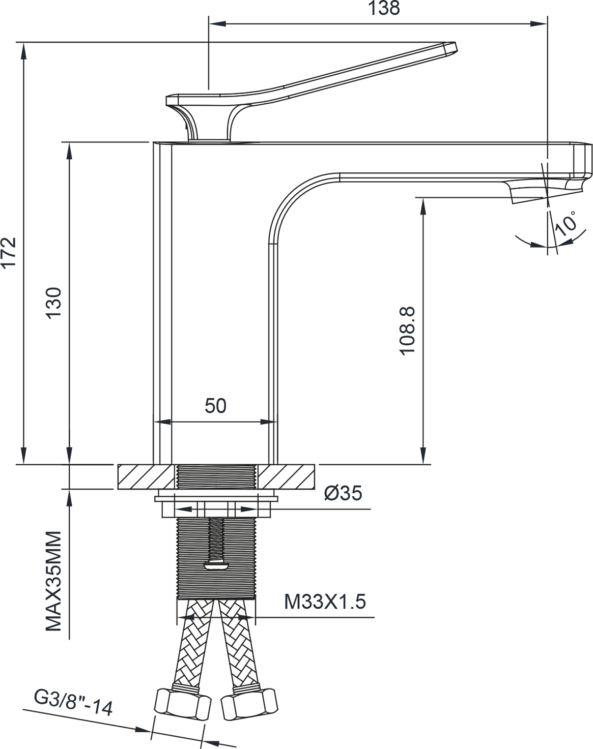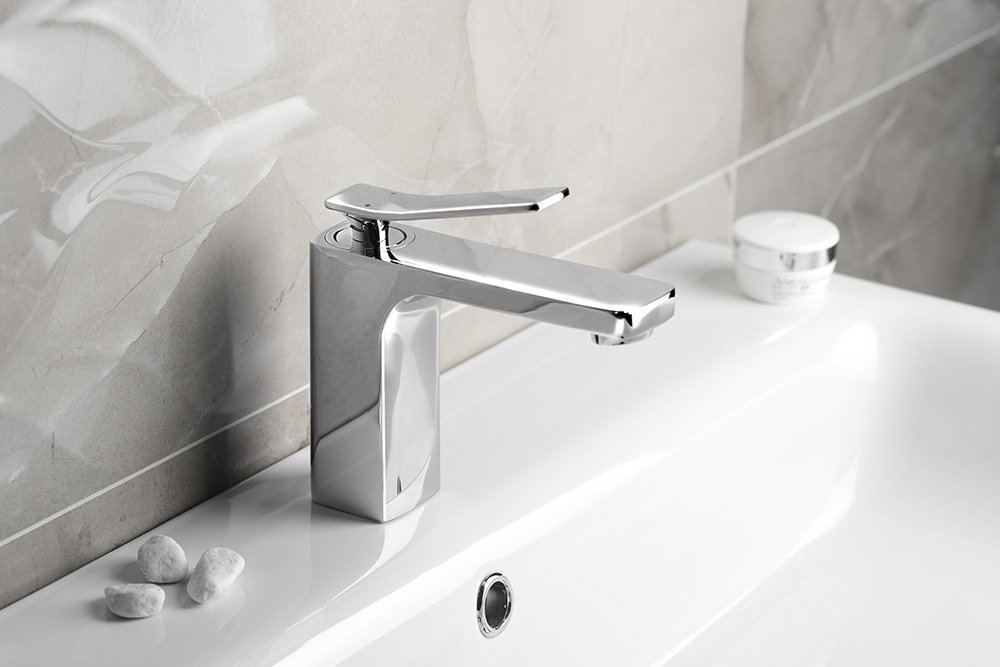 Spojnicí položek napříč sérií JUMPER jsou zaoblené rohy. Vodovodní baterie jsou ovládány designovou pákou, která svým prohnutím a úzkým nasazením na tělo baterie působí odlehčeně.