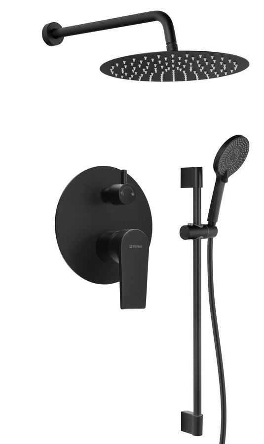 Sapho KAI podomítkový sprchový set s pákovou baterií, otočný přepínač, 2 výstupy, černá mat KA43/15-04