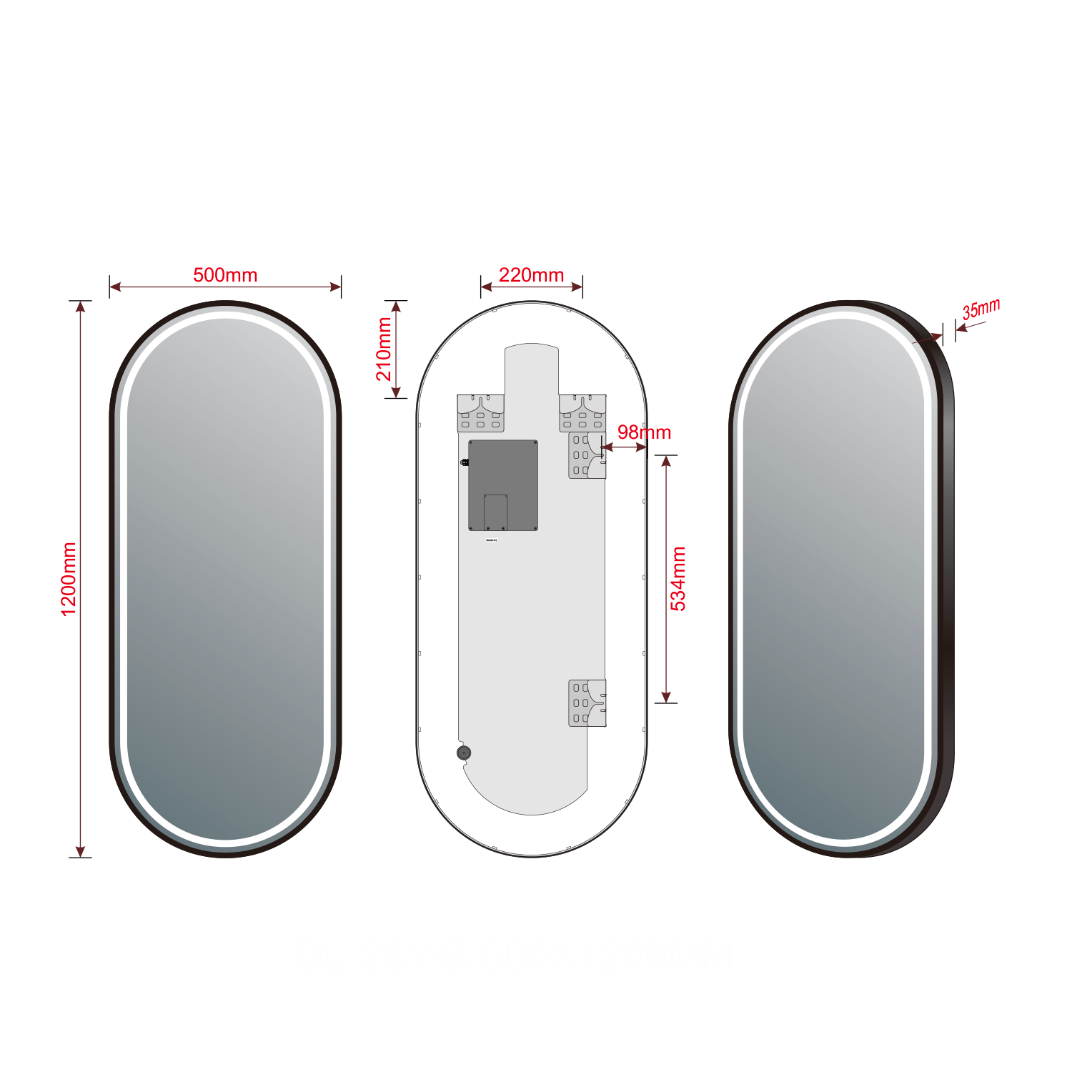 Sapho KAIRA oválné zrcadlo s LED osvětlením 120x50cm, černá mat KA500