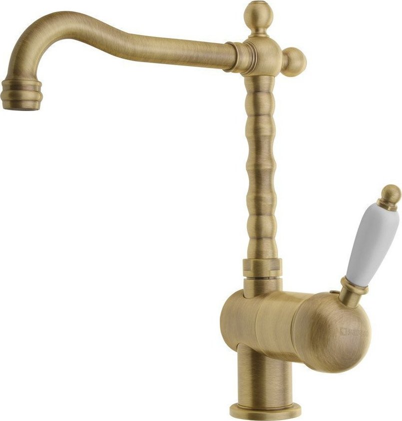 Sapho KIRKÉ WHITE stojánková dřezová baterie, bílá páčka, bronz KI14BB