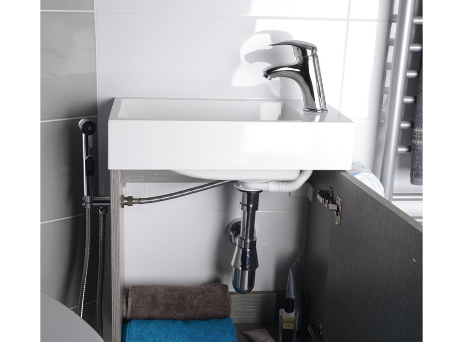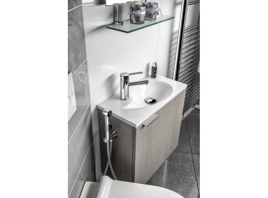 Malé rozměry koupelnového nábytku LATUS umožňují instalaci především do stísněných prostor, obzvláště na toalety. Skříňka se přímo nabízí k uskladnění čistících a hygienických prostředků nebo toaletního papíru. Umyvadlo z litého mramoru nebo keramiky vytváří se skříňkou kompaktní celek. V nabídce je jak několik tvarů umyvadel, tak barevných dekorů skříněk pro větší kompatibilitu.