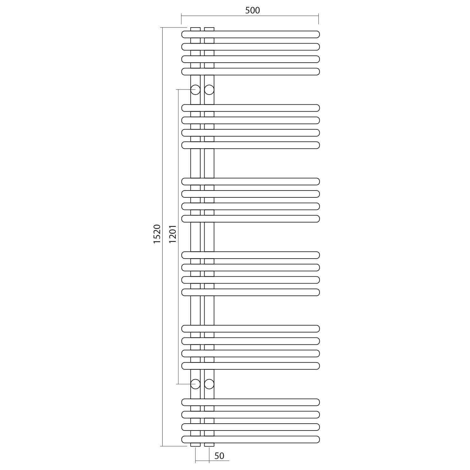 Klasické trubky s kruhovým profilem sestavené v designový radiátor, který lze díky středovému připojení s roztečí 50 mm kombinovat s designovými ventily z naší nabídky.