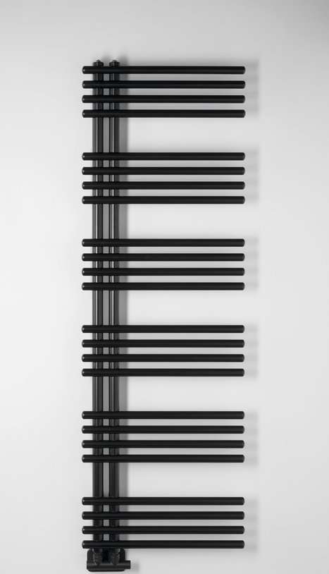 Klasické trubky s kruhovým profilem sestavené v designový radiátor, který lze díky středovému připojení s roztečí 50 mm kombinovat s designovými ventily z naší nabídky.
