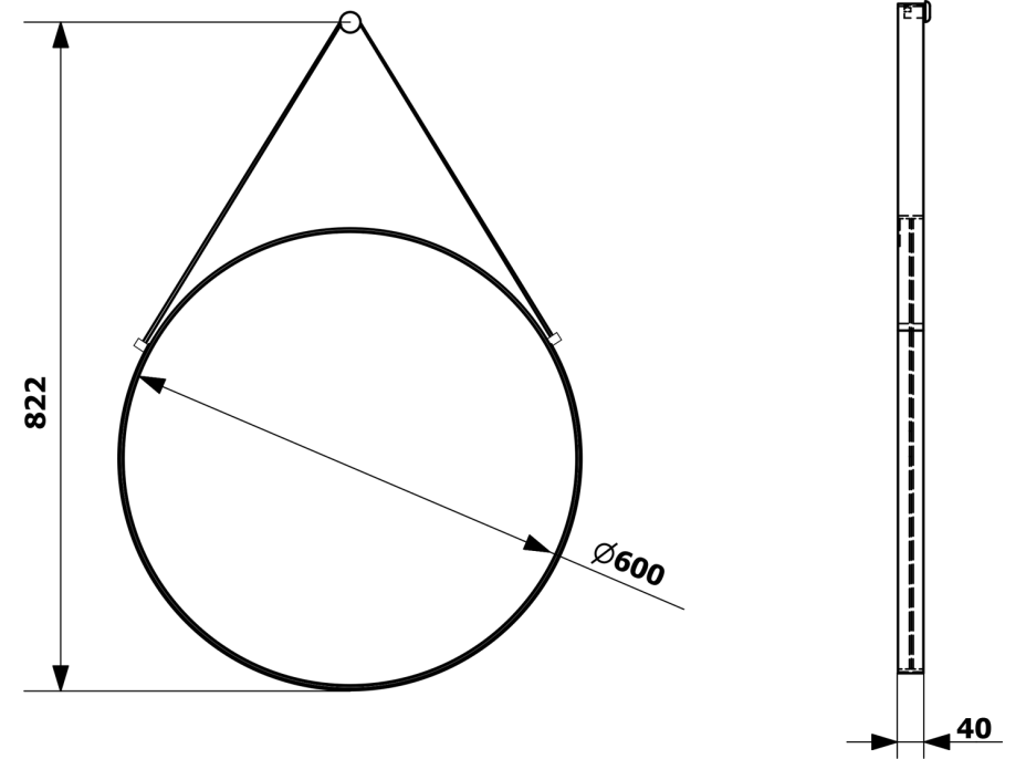 Sapho ORBITER kulaté zrcadlo s koženým páskem ø 60cm, černá mat ORT060