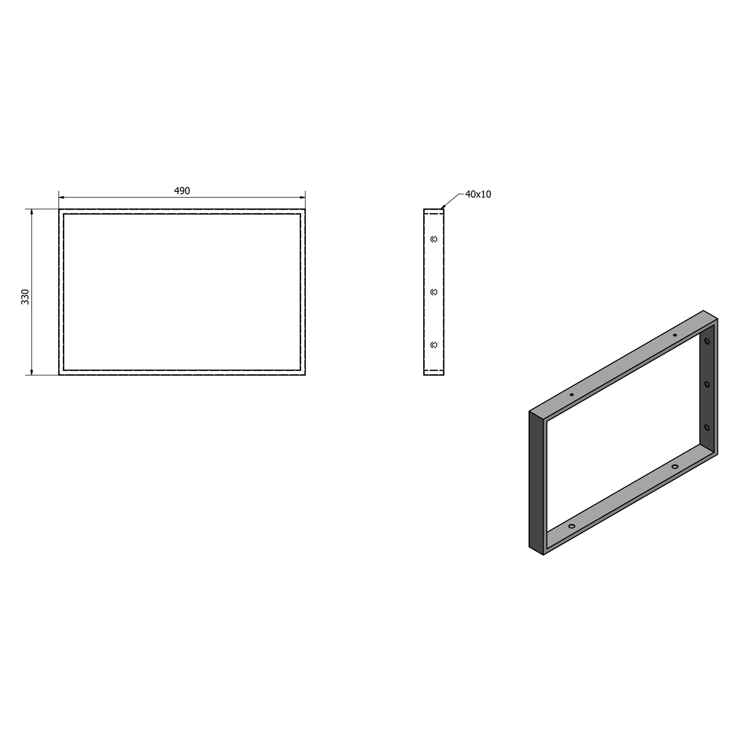 Sapho Podpěrná konzole 490x330x40mm, lakovaná ocel, černá mat, 1 ks 30370