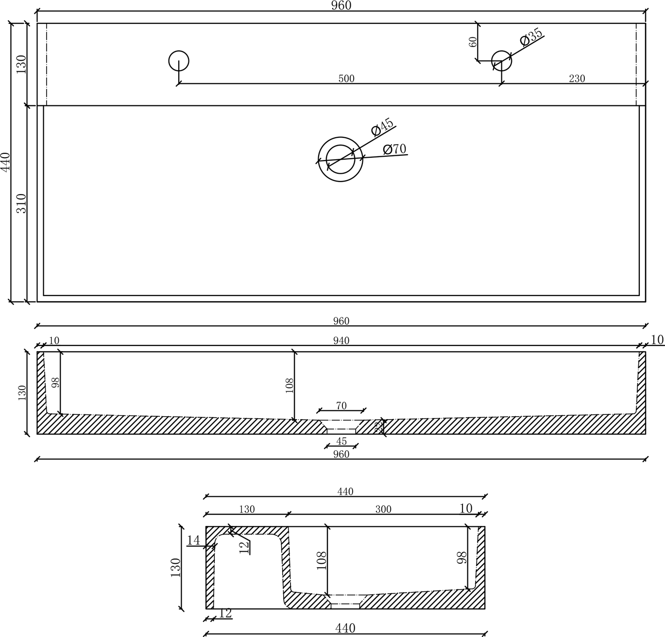 Sapho QUADRADO betonové umyvadlo včetně výpusti, 96x44cm, 2 otvory, bílý pískovec AR475