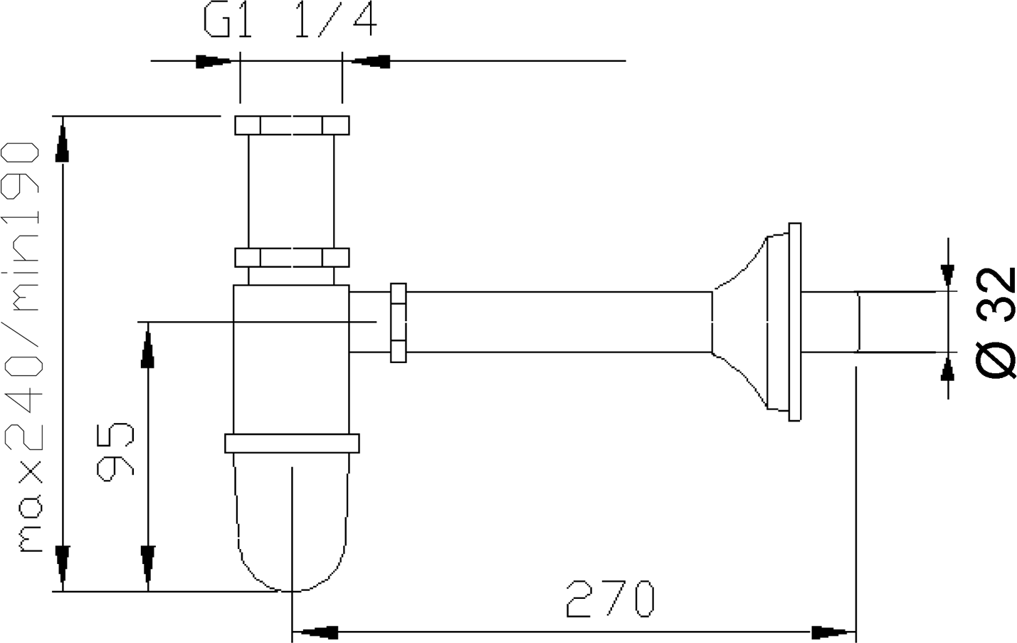 Sapho RETRO umyvadlový sifon 5/4", odpad 32 mm, zlato 9595