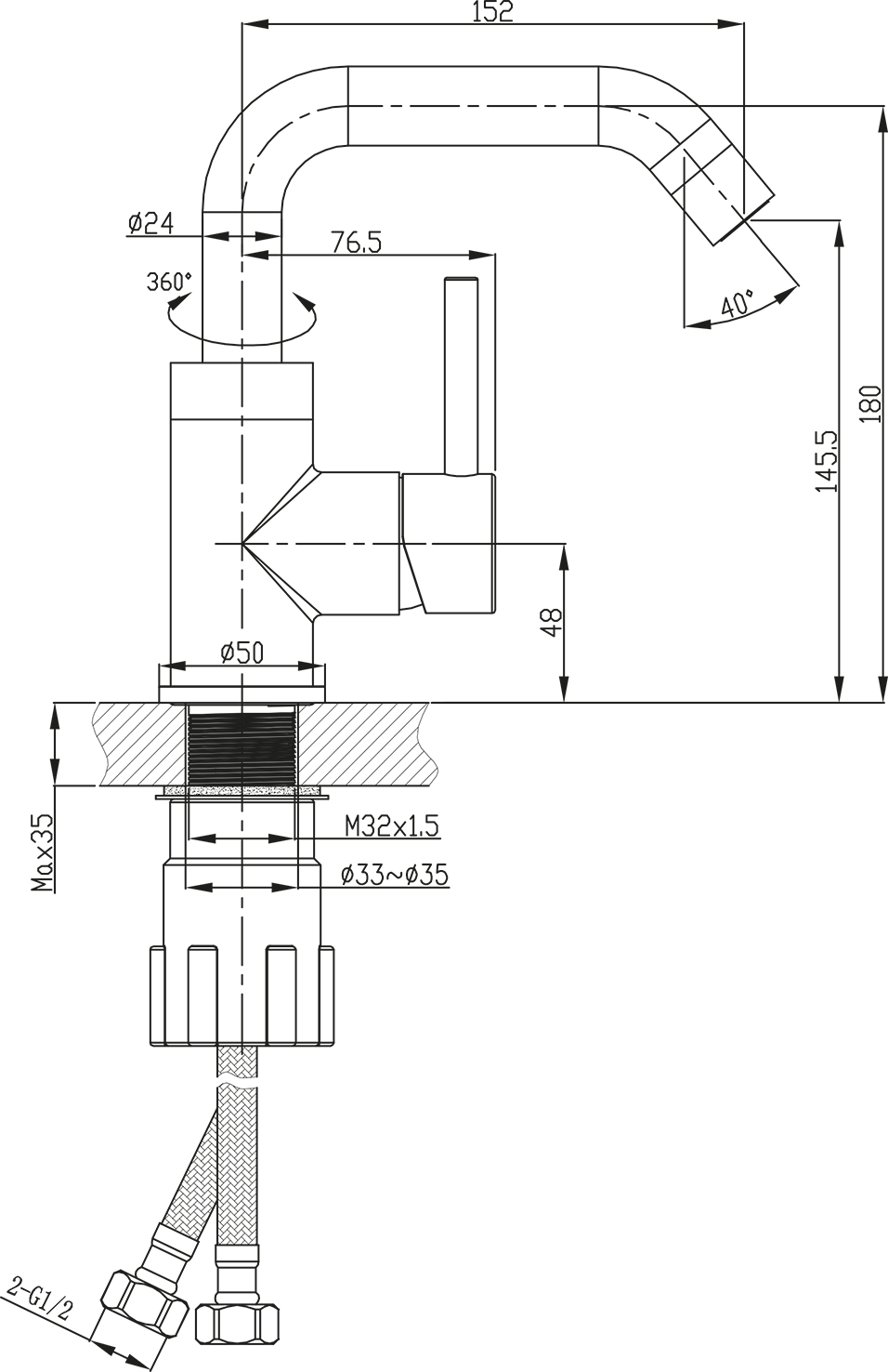 - Výška výtoku: 145.5 mm