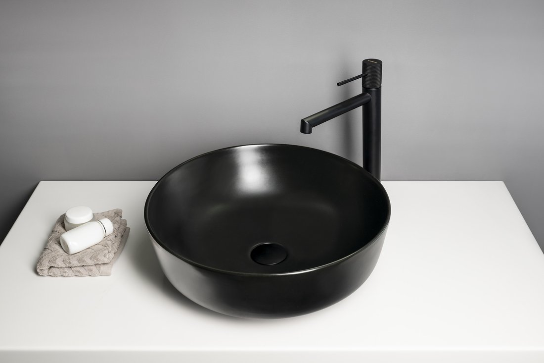 Sapho RONDEA keramické umyvadlo na desku Ø 41cm, černá mat AR445B