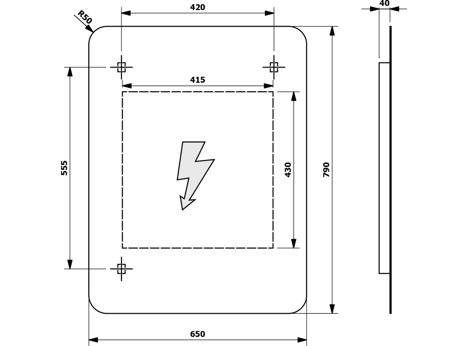- Typ zrcadla: Zrcadla podsvícená