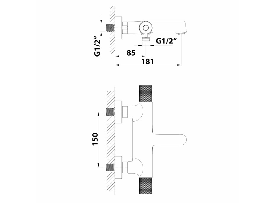 Sapho SOLARIS nástěnná vanová termostatická baterie, černá mat/chrom WD010BC