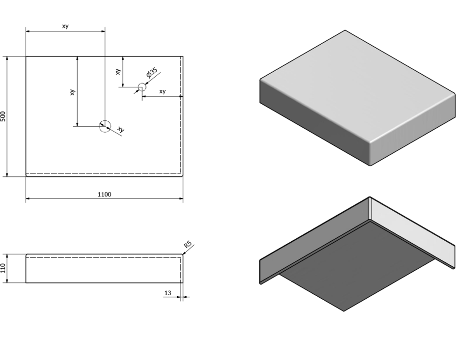 - Možnost dodání s otvory pro baterii a odpad dle výkresu (lze vrtat i v místě instalace)