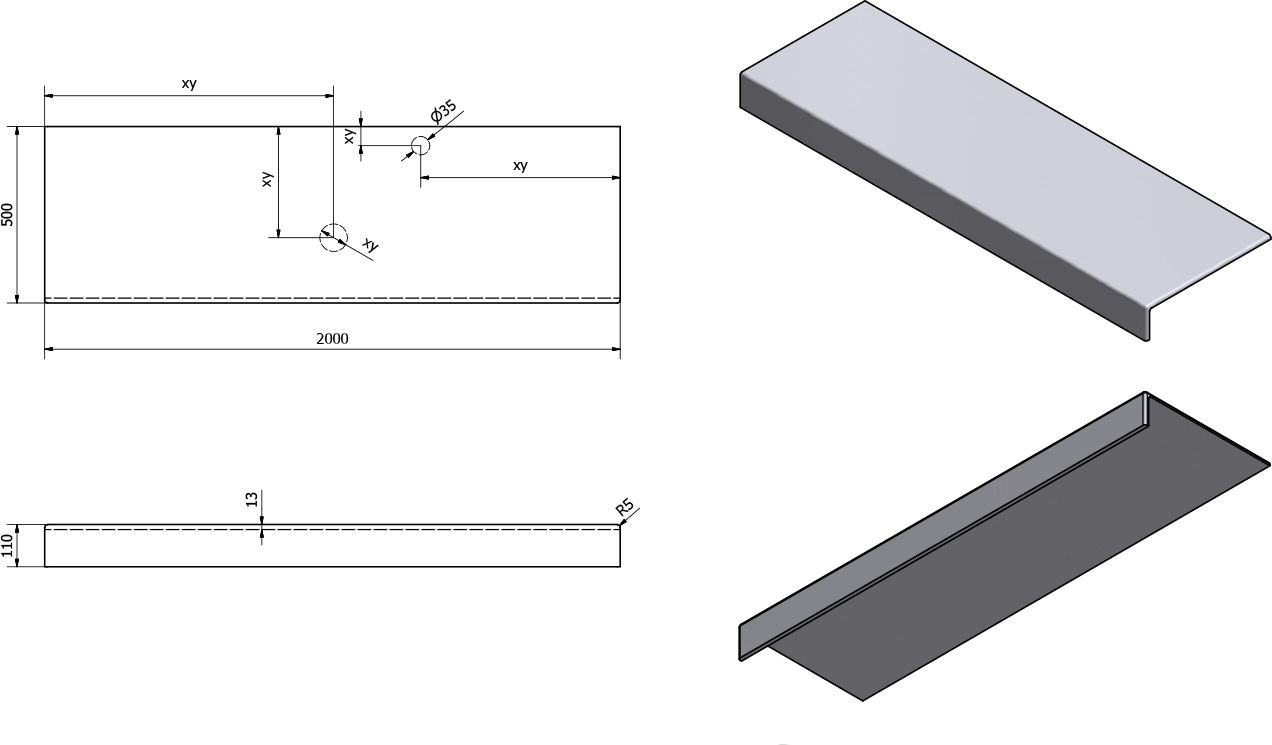 - Možnost dodání s otvory pro baterii a odpad dle výkresu (lze vrtat i v místě instalace)