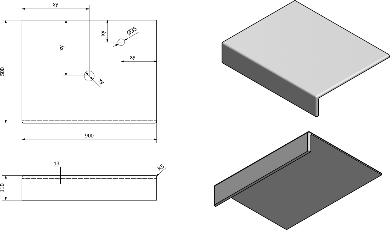 - Možnost dodání s otvory pro baterii a odpad dle výkresu (lze vrtat i v místě instalace)