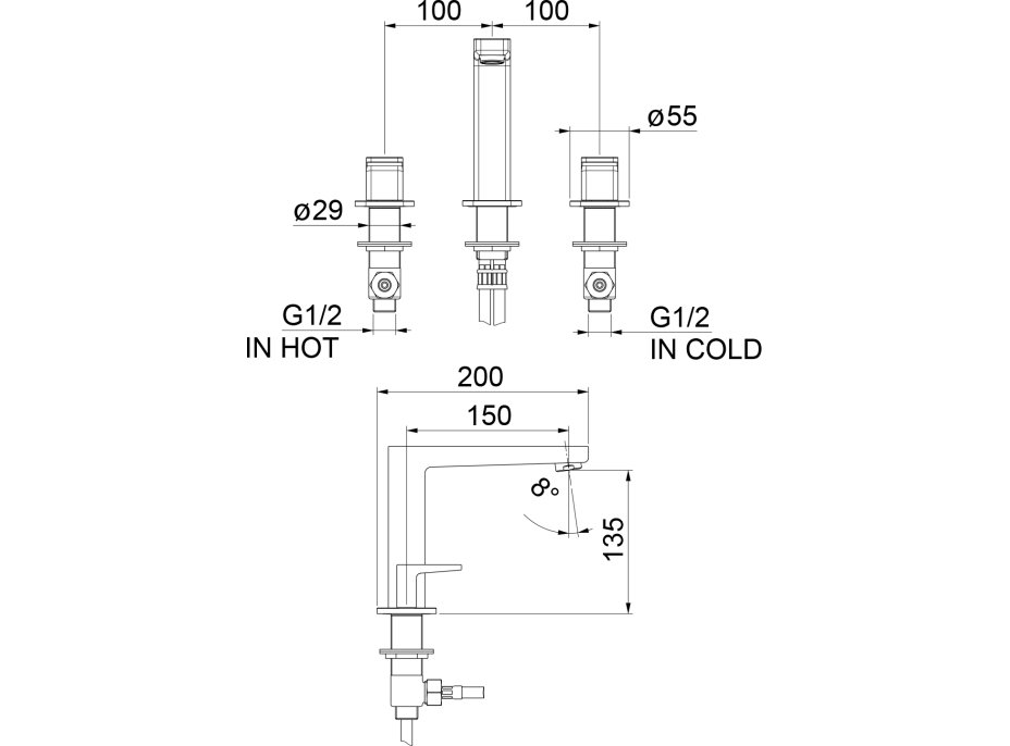 Sapho TURSI tříprvková stojánková umyvadlová baterie bez výpusti, černá mat TI017B