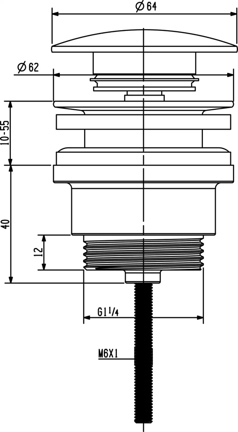 Sapho Umyvadlová výpust 5/4“, click-clack, velká zátka, 10-55mm, měď mat CV1002PG