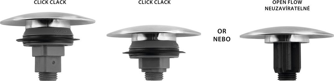 Jedná se o moderní variantu mechanismu uzavírání výpustí do umyvadel a van. Již nemusíte přemýšlet, kam odložit gumovou zátku, nebude překážet řetízek, odpadne nepohodlné ovládání zátky pomocí táhla u baterie. Systém Click Clack je ovládán pouhým stlačením zátky.
