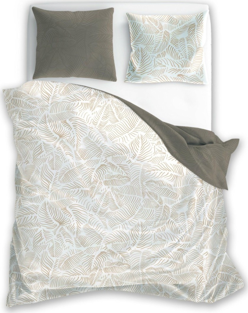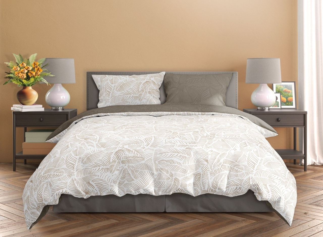 Saténové povlečení MILAGRO VERDE Béžové listy - bílé/hnědé - 220x200 cm