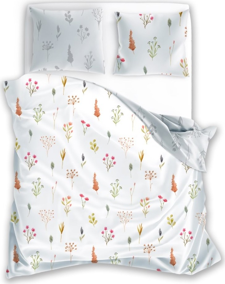 Saténové povlečení MILAGRO VERDE Byliny - bílé/šedé - 160x200 cm