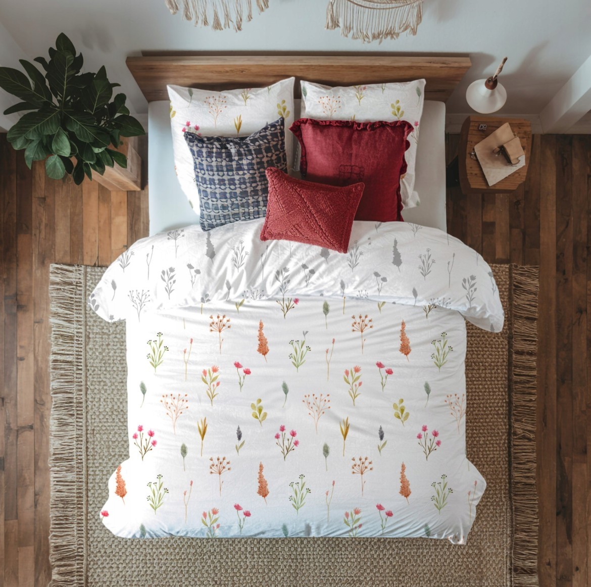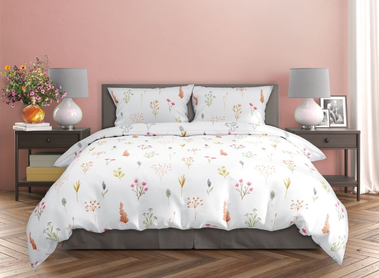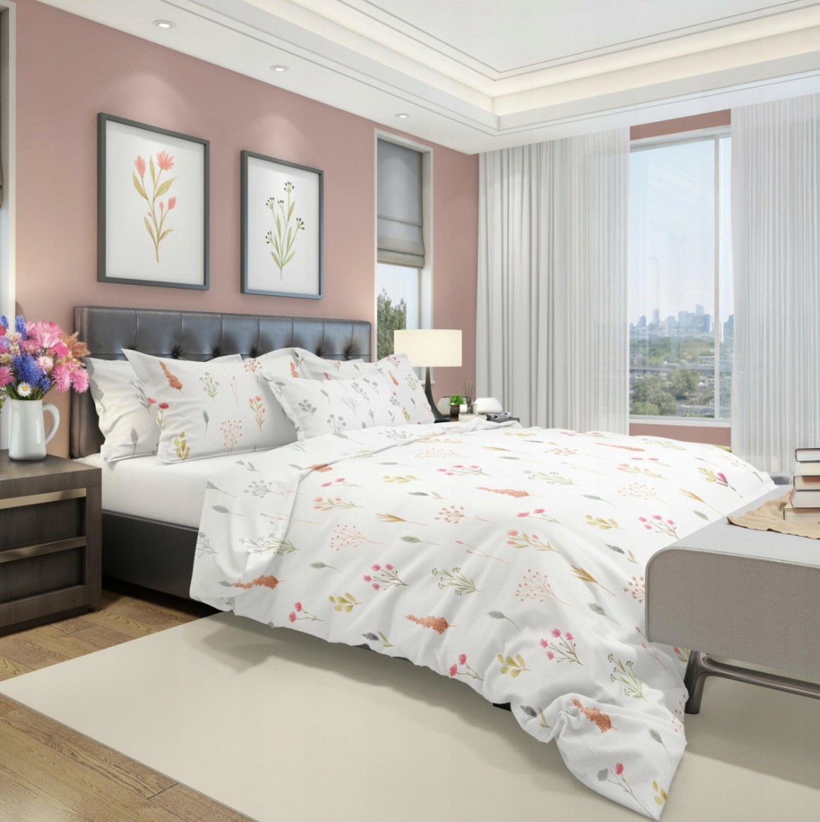 Saténové povlečení MILAGRO VERDE Byliny - bílé/šedé - 220x200 cm