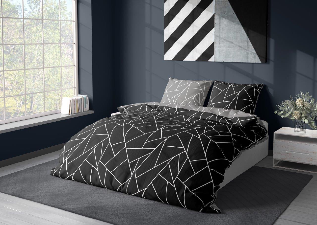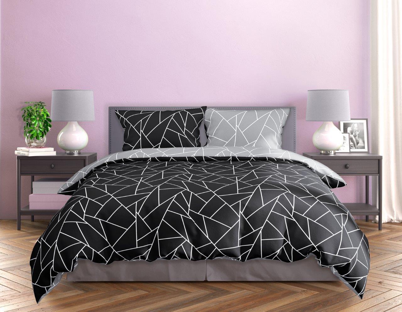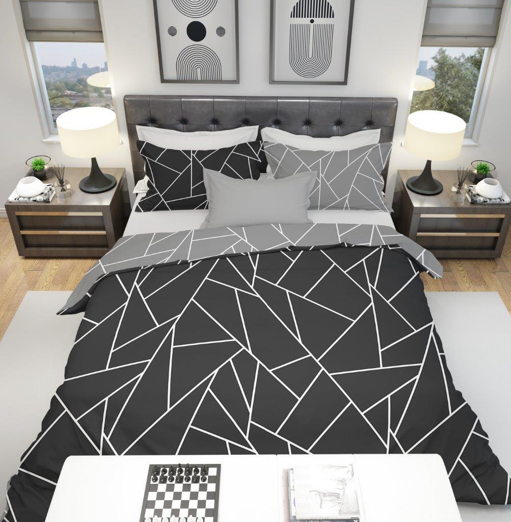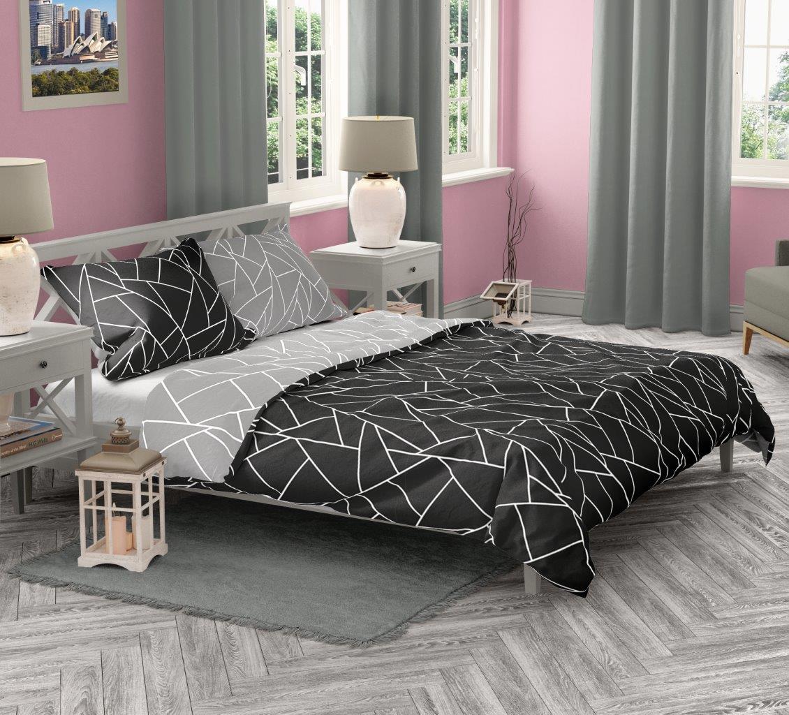 Saténové povlečení MILAGRO VERDE Fragments - černé/šedé - 140x200 cm