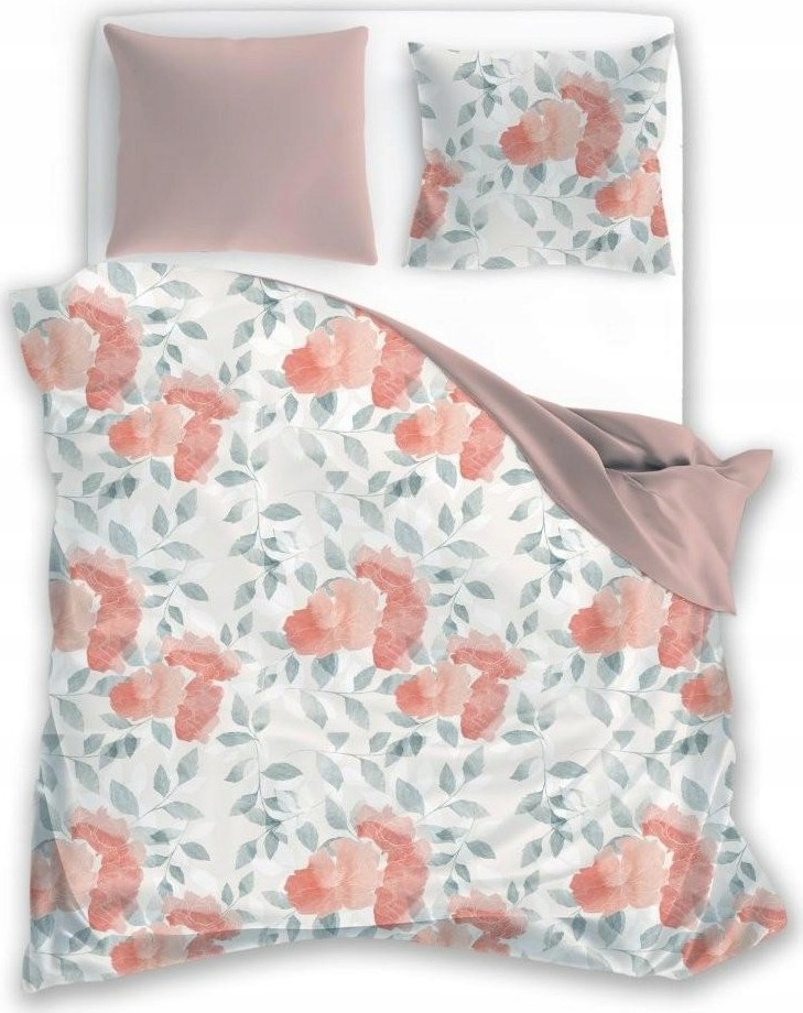 Saténové povlečení MILAGRO VERDE Růžové květy - bílé/růžové - 220x200 cm
