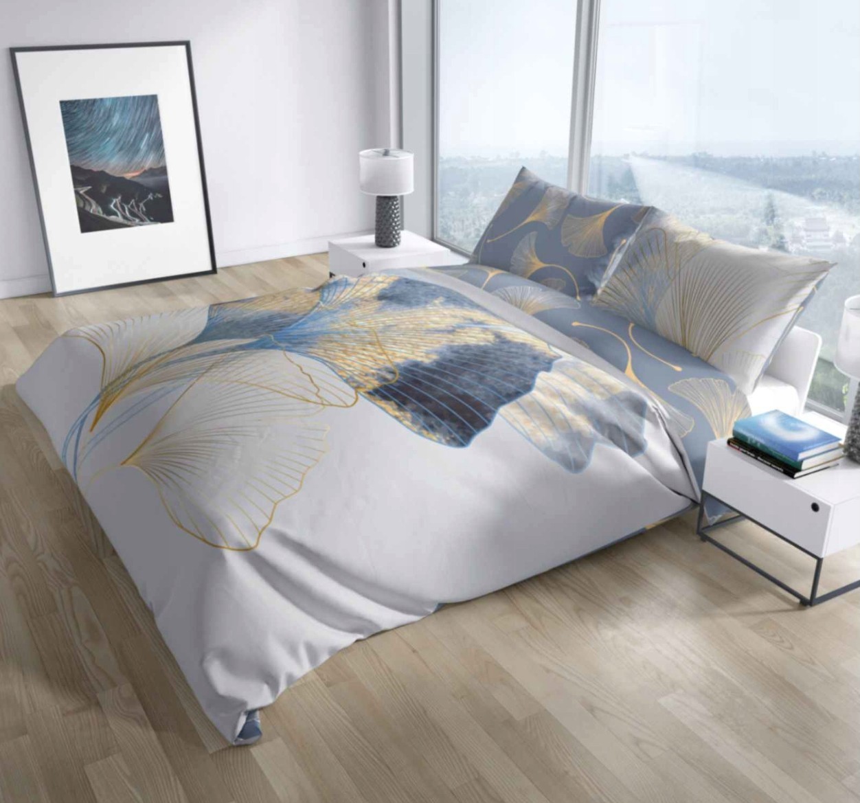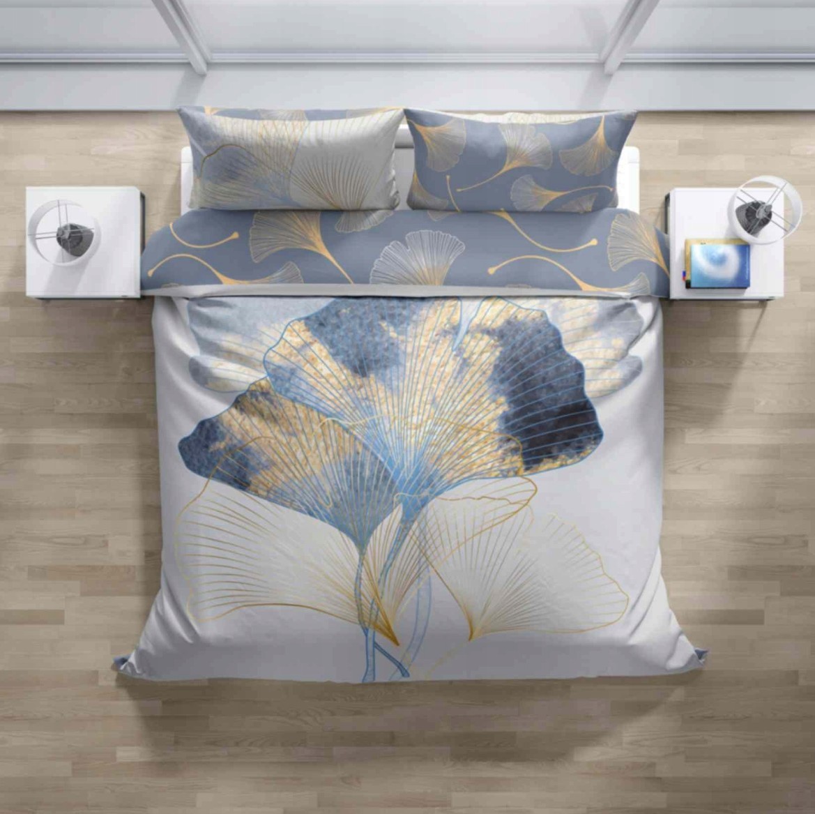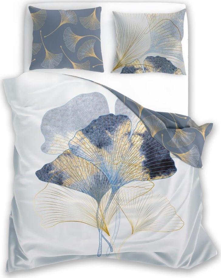 Saténové povlečení NOBILE Ginkgo - bílé/šedé - 140x200 cm