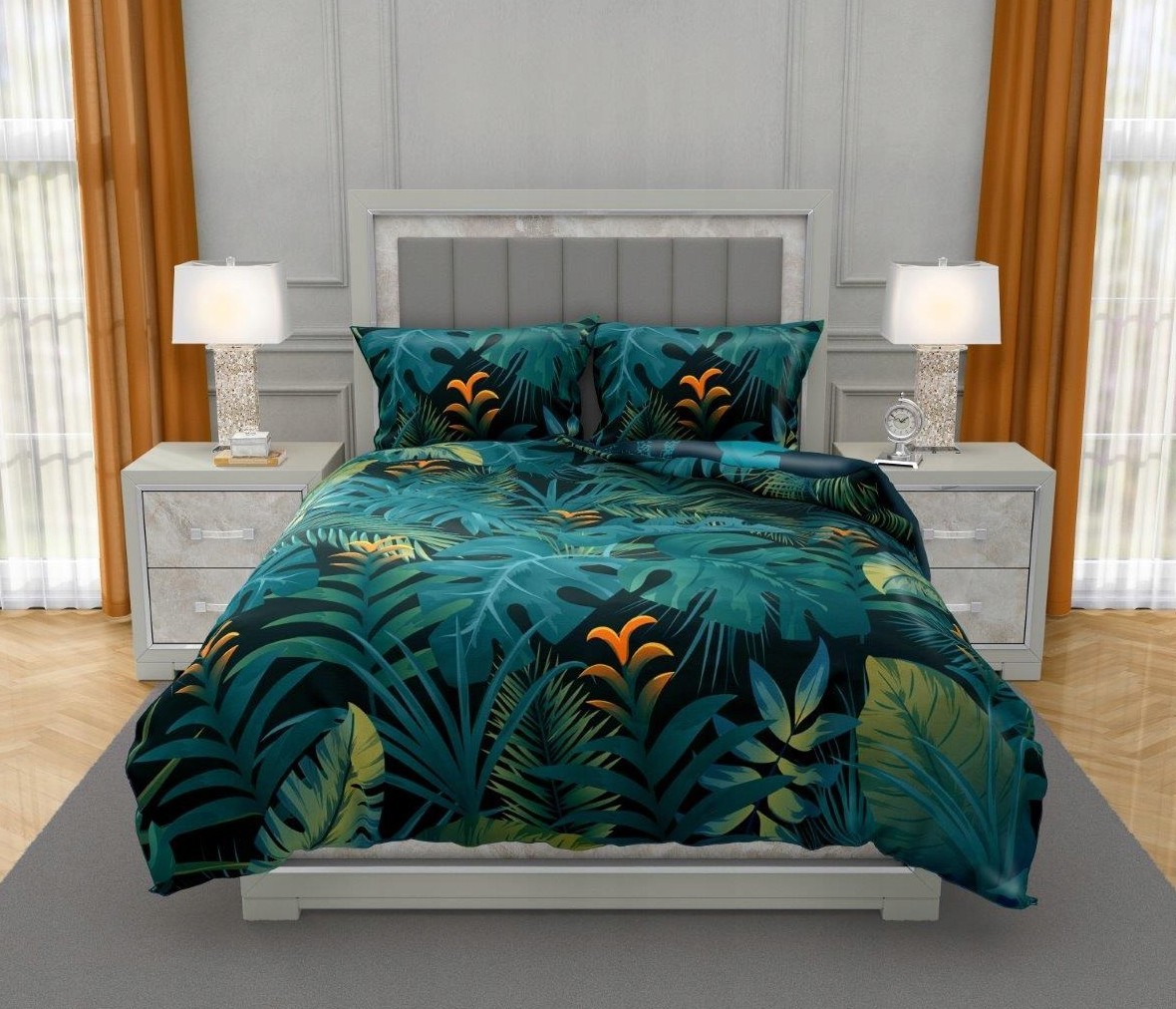 Saténové povlečení NOBILE Jungle - tmavě zelené - 220x200 cm