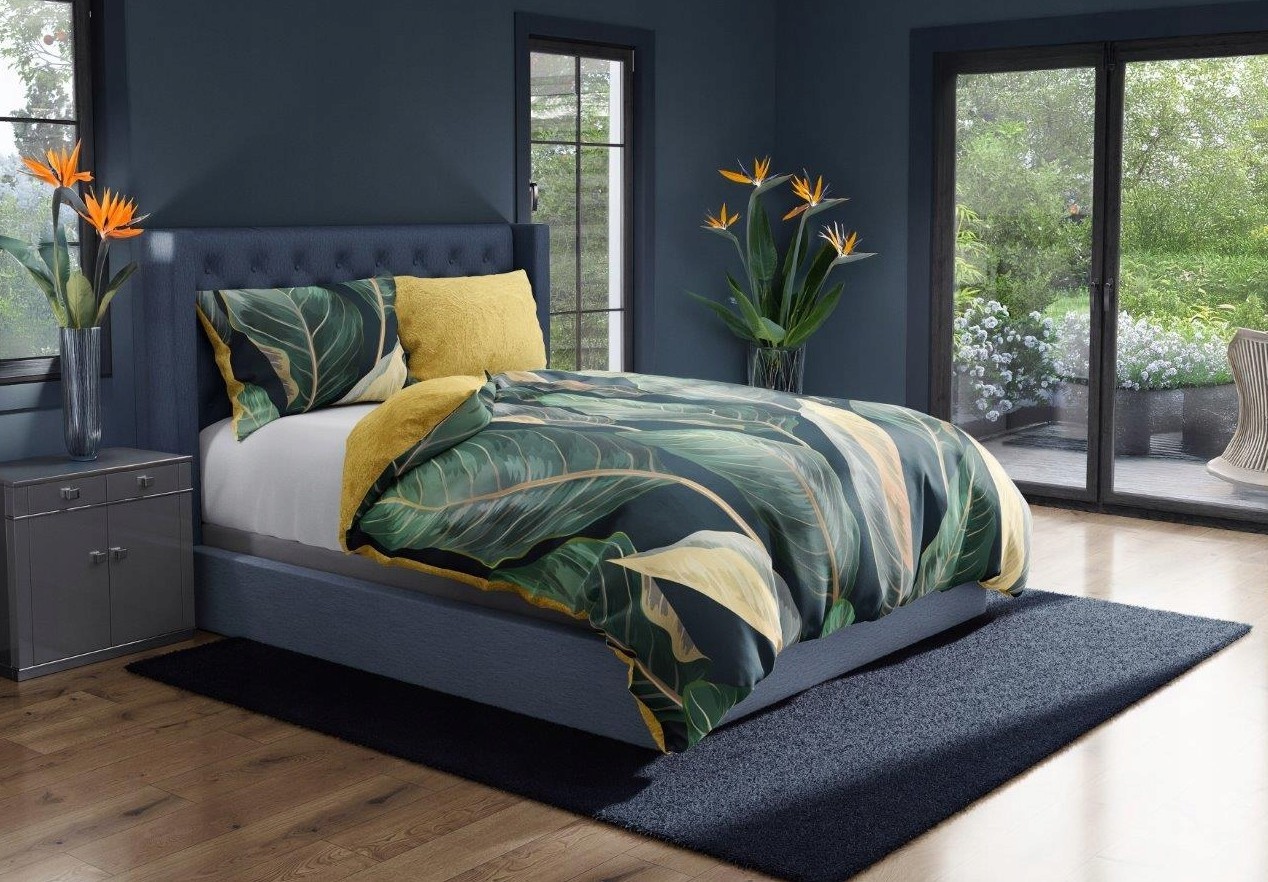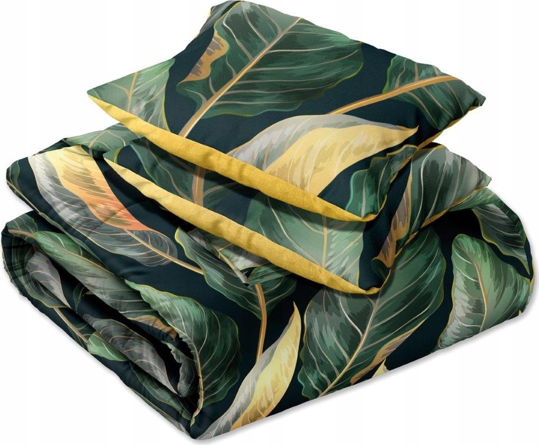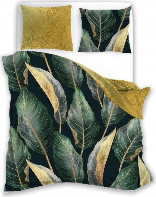 Saténové povlečení NOBILE Leaves- zelené/žluté - 220x200 cm