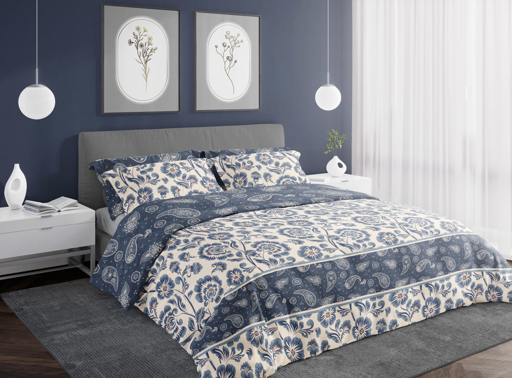 Saténové povlečení PURE SATEEN - modré květy - 160x200 cm