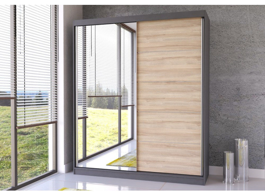 BIANCA 183 je prostorná a elegantní šatní skříň s ozdobnými lištami na přední straně, posuvnými dveřmi a velkým zrcadlem, které opticky zvětšuje místnost. Díky možnosti volby mezi různými barvami korpusů se skříň hodí do mnoha místností. Skříň je rozdělena na dvě části, které jsou vybaveny nejen prostornými policemi a závěsnou tyčí, ale také dostatečným prostorem pro uložení velkého množství oblečení, což z ní dělá praktickou volbu pro každou domácnost. Šatní skříň je vybavena systémem posuvných dveří, který usnadňuje její používání a nezabírá místo. Velká kapacita a funkčnost v kombinaci s moderním designem - to jsou hlavní vlastnosti každé šatní skříně BIANCA.