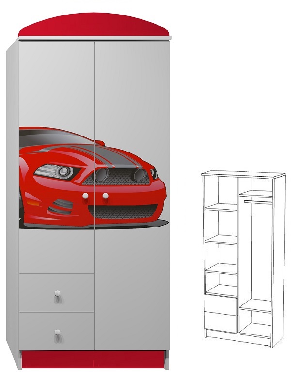Šatní skříň ČERVENÝ SPORŤÁK - TYP E, červená / bílá