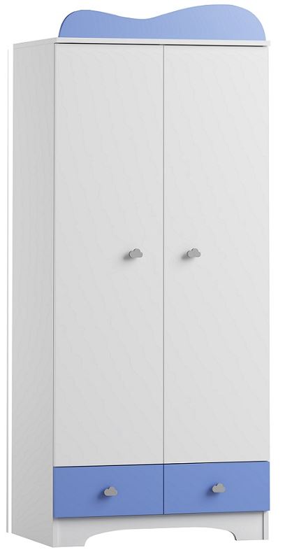 Prostorná šatní skříň CLOUDS se vyznačuje vysokou kvalitou zpracování, kterou zajišťují kvalitní lamino desky o síle 18 mm. Hrany nábytku jsou opatřeny ABS/PVC materiálem, který jej chrání před mechanickým poškozením a vlhkostí. Barvu skříně lze vybírat ze široké nabídky dle vaši představ. Skříň obsahuje šatní tyč po celé její šířce. Další úložný prostor poskytují šuplíky ve spodní části skříně. Získáte tak velké množství úložných prostor pro oblečení a doplňky. Dvířka i čela šuplíků jsou osazená plastovými úchyty ve tvaru mráčků, charakteristickými pro celou kolekci. Úchyty dodávají nábytku jedinečný charakter a styl. Šatní skříň CLOUDS skvěle doplní nábytek z této kolekce a vy tak můžete vytvořit kombinaci přesně podle potřeb vašeho dítěte nebo mladého studenta.