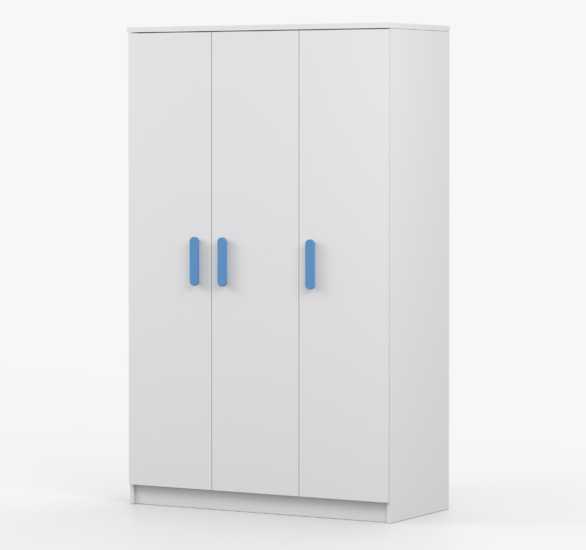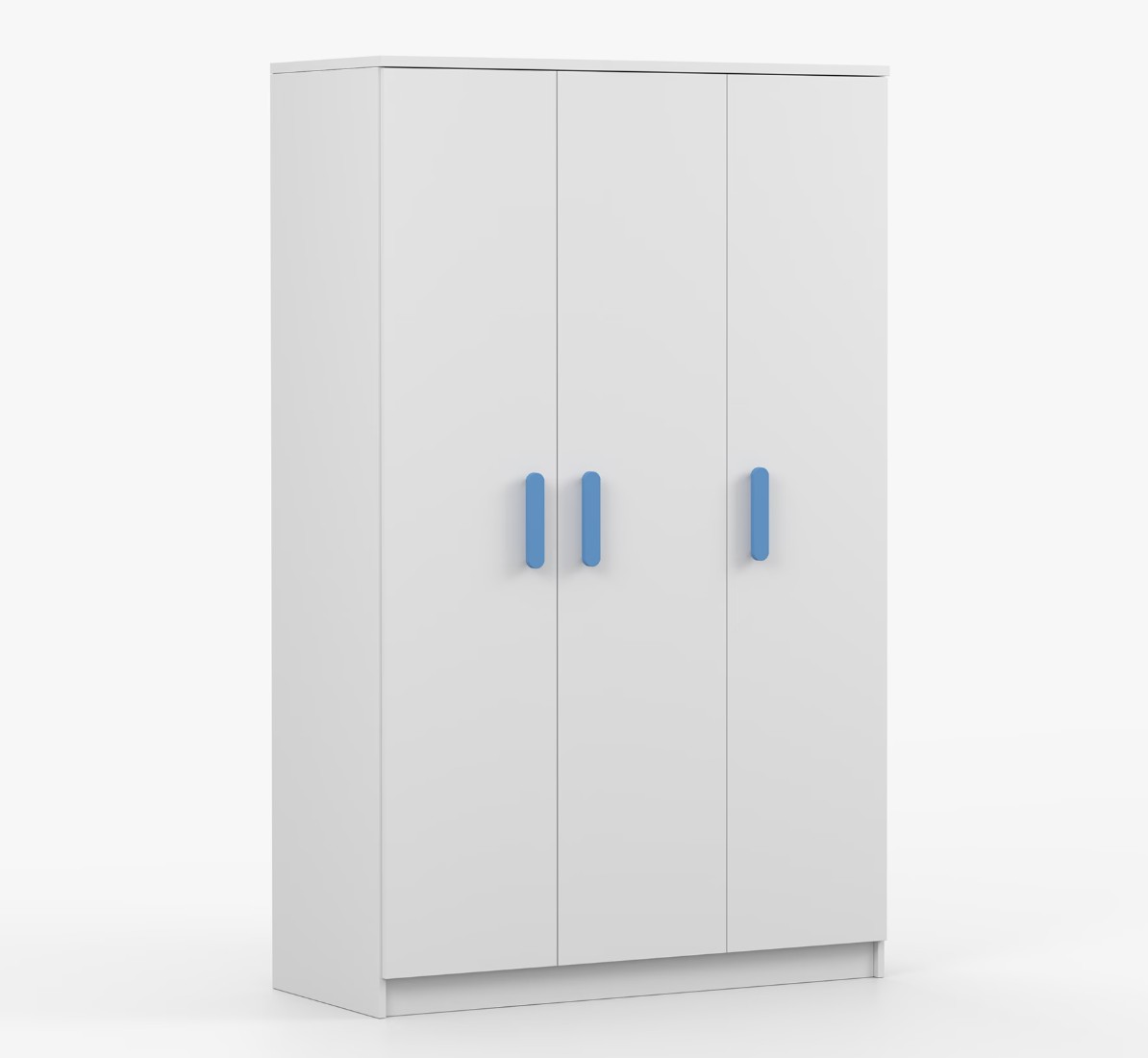 Třídveřová šatní skříň SCOUT se vyznačuje praktickým úložným prostorem a velkou kapacitou. S jednoduchým a moderním designem se skříň SCOUT hodí do každého typu domácnosti - ať už jde o dětský pokoj nebo studentův byt. Skříň je vyrobena z kvalitní laminované desky o tloušťce 16 mm s odolnými ABS hranami, které ji chrání před mechanickým poškozením. Šatní skříň poskytuje velký úložný prostor s dostatečným množstvím polic i místo na pověšení oblečení. Dveře jsou opatřené dřevěnými barevnými úchytkami a otevírají se tradičním způsobem.