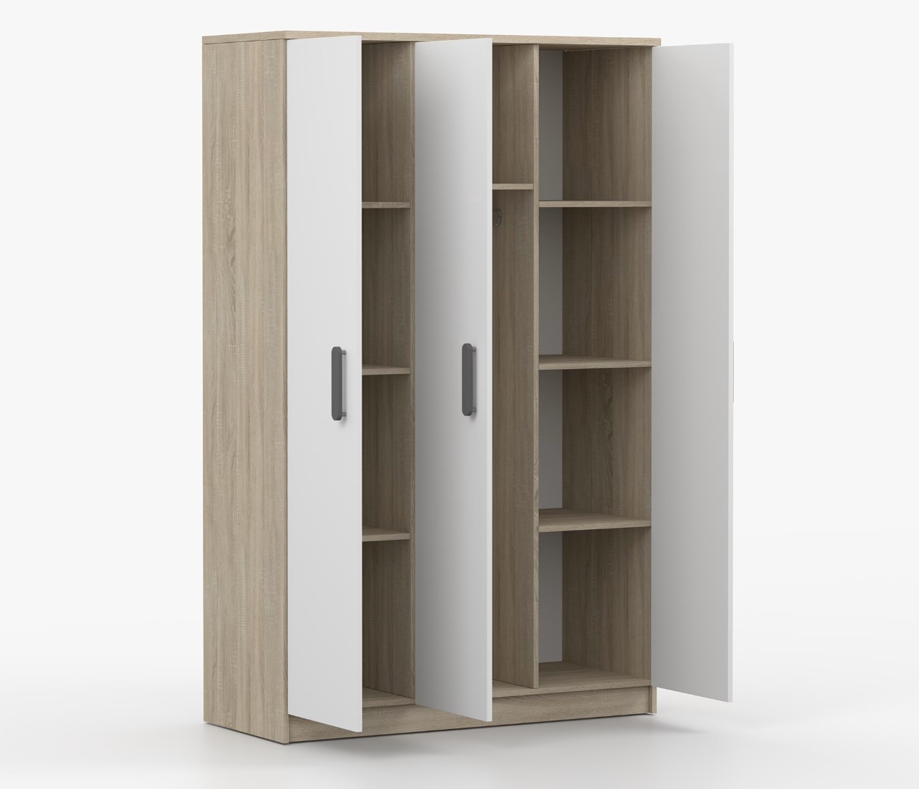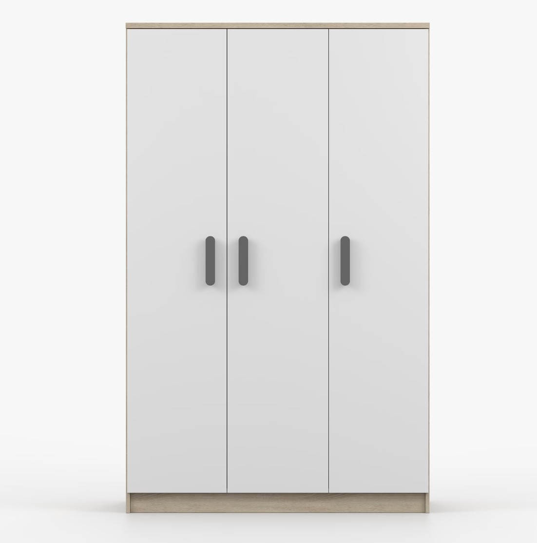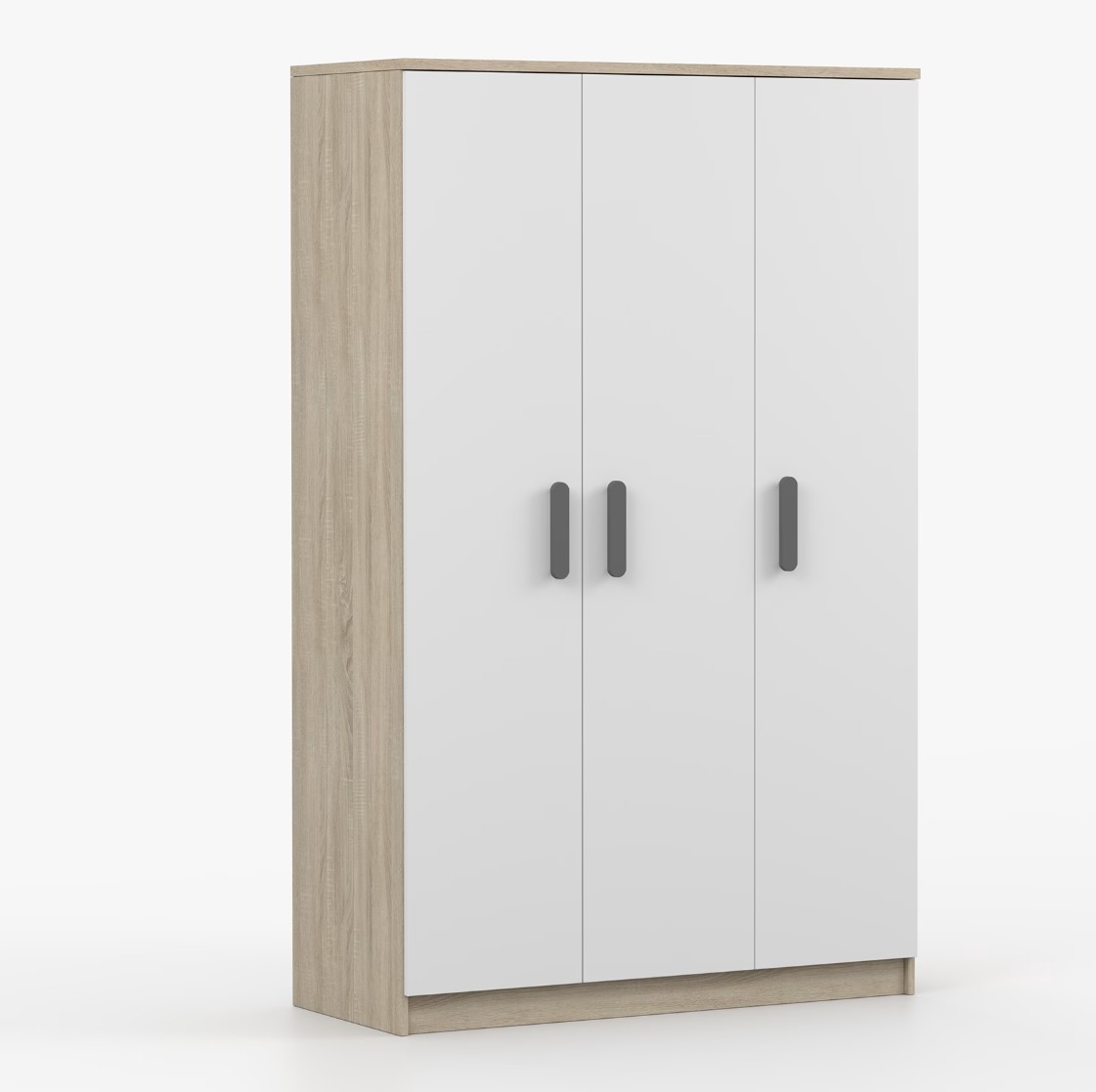 Třídveřová šatní skříň SCOUT se vyznačuje praktickým úložným prostorem a velkou kapacitou. S jednoduchým a moderním designem se skříň SCOUT hodí do každého typu domácnosti - ať už jde o dětský pokoj nebo studentův byt. Skříň je vyrobena z kvalitní laminované desky o tloušťce 16 mm s odolnými ABS hranami, které ji chrání před mechanickým poškozením. Šatní skříň poskytuje velký úložný prostor s dostatečným množstvím polic i místo na pověšení oblečení. Dveře jsou opatřené dřevěnými barevnými úchytkami a otevírají se tradičním způsobem.