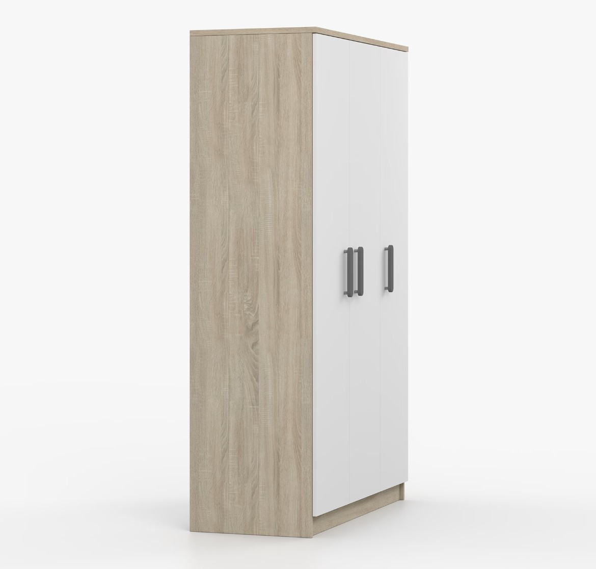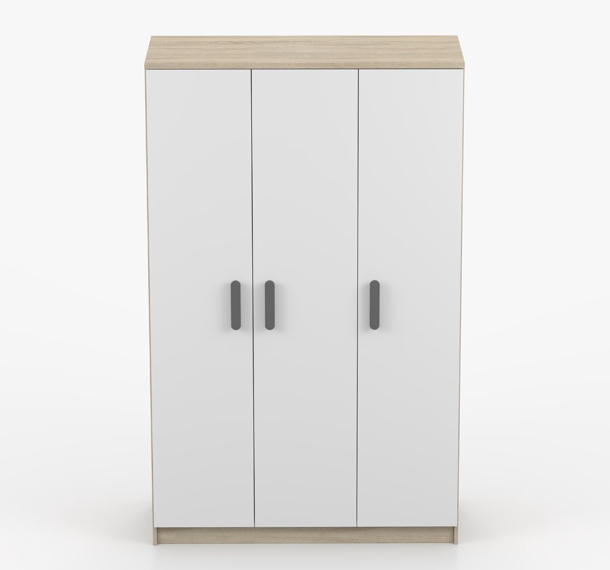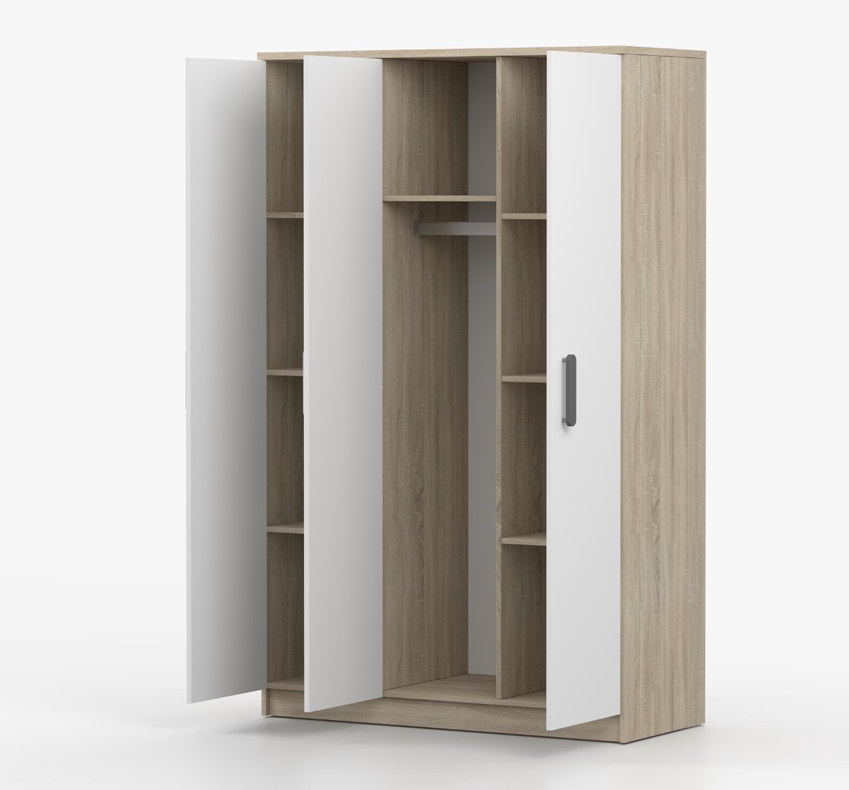 Třídveřová šatní skříň SCOUT se vyznačuje praktickým úložným prostorem a velkou kapacitou. S jednoduchým a moderním designem se skříň SCOUT hodí do každého typu domácnosti - ať už jde o dětský pokoj nebo studentův byt. Skříň je vyrobena z kvalitní laminované desky o tloušťce 16 mm s odolnými ABS hranami, které ji chrání před mechanickým poškozením. Šatní skříň poskytuje velký úložný prostor s dostatečným množstvím polic i místo na pověšení oblečení. Dveře jsou opatřené dřevěnými barevnými úchytkami a otevírají se tradičním způsobem.