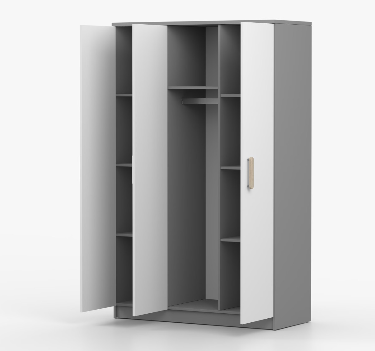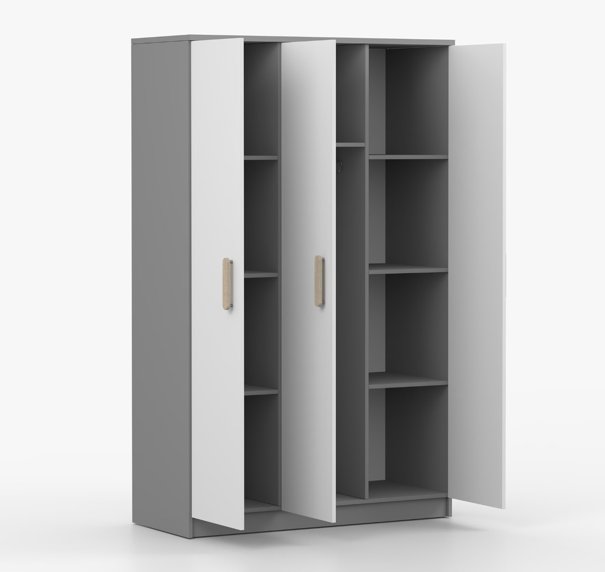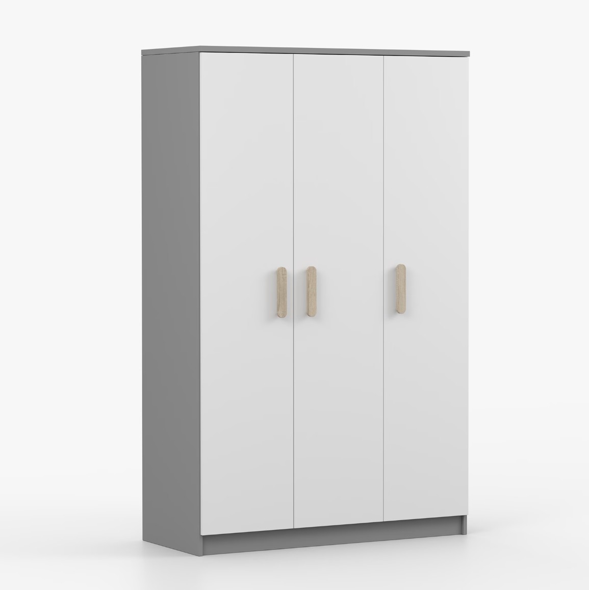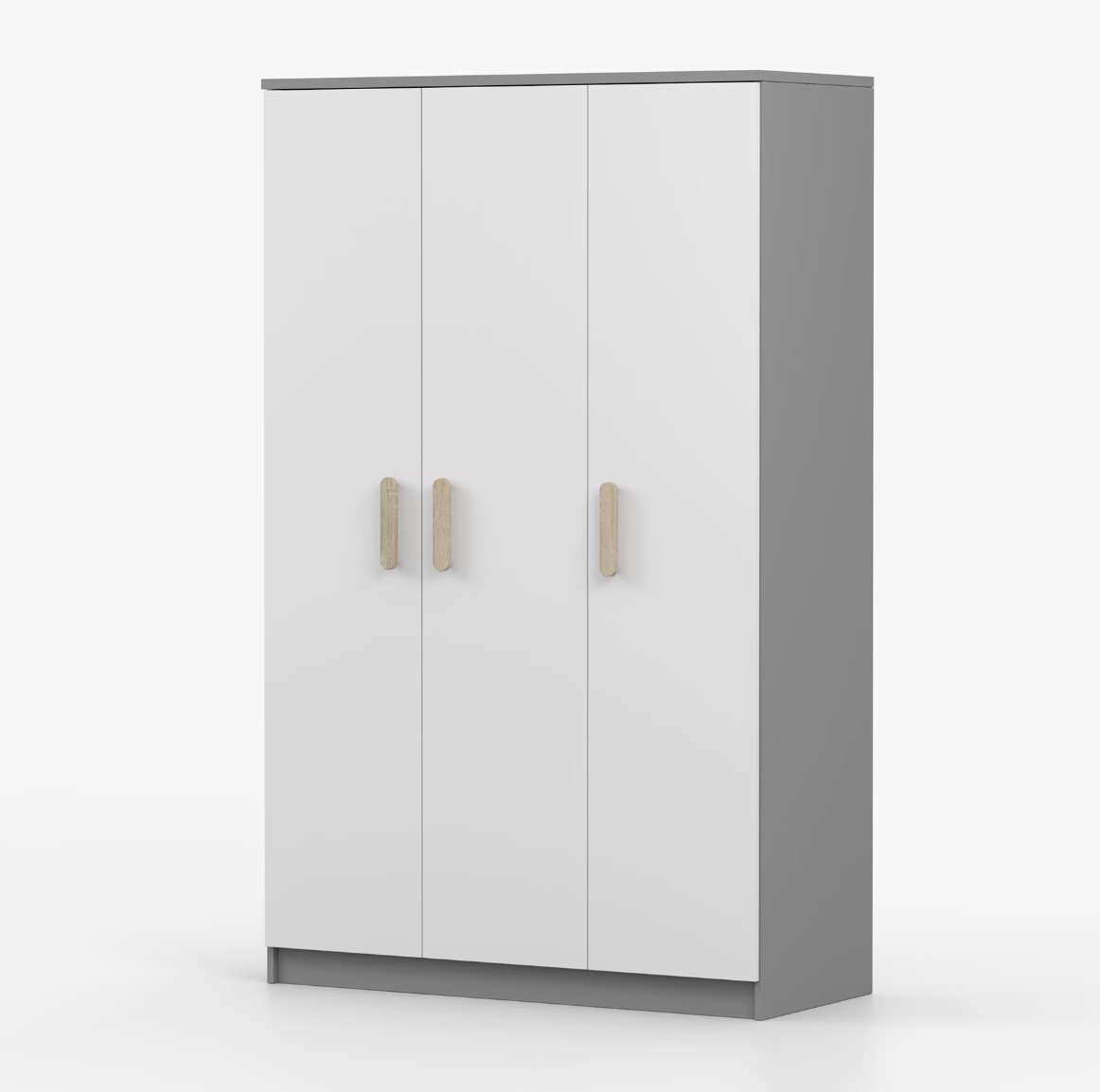 Třídveřová šatní skříň SCOUT se vyznačuje praktickým úložným prostorem a velkou kapacitou. S jednoduchým a moderním designem se skříň SCOUT hodí do každého typu domácnosti - ať už jde o dětský pokoj nebo studentův byt. Skříň je vyrobena z kvalitní laminované desky o tloušťce 16 mm s odolnými ABS hranami, které ji chrání před mechanickým poškozením. Šatní skříň poskytuje velký úložný prostor s dostatečným množstvím polic i místo na pověšení oblečení. Dveře jsou opatřené dřevěnými barevnými úchytkami a otevírají se tradičním způsobem.