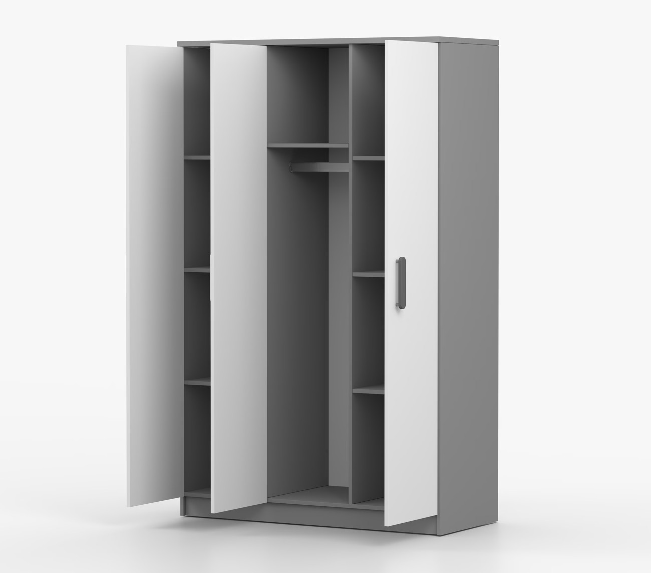 Třídveřová šatní skříň SCOUT se vyznačuje praktickým úložným prostorem a velkou kapacitou. S jednoduchým a moderním designem se skříň SCOUT hodí do každého typu domácnosti - ať už jde o dětský pokoj nebo studentův byt. Skříň je vyrobena z kvalitní laminované desky o tloušťce 16 mm s odolnými ABS hranami, které ji chrání před mechanickým poškozením. Šatní skříň poskytuje velký úložný prostor s dostatečným množstvím polic i místo na pověšení oblečení. Dveře jsou opatřené dřevěnými barevnými úchytkami a otevírají se tradičním způsobem.